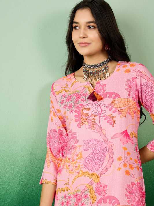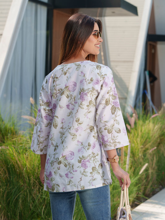 Floral Printed Pure Cotton Three Quarter Sleeves Tunics