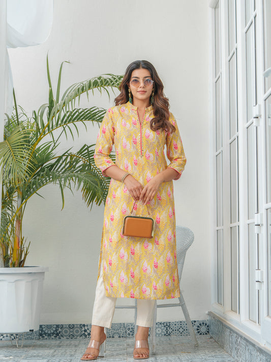You save 48%Floral Printed Mandarin Collar Straight Kurta