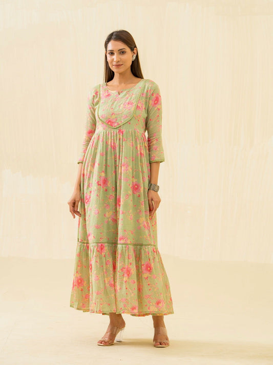 Green & Pink Ethnic Printed Regular Sleeves Button Floral