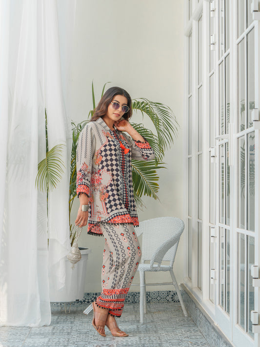 You save 64%Geometric Printed Tunic With Trousers Co-Ords