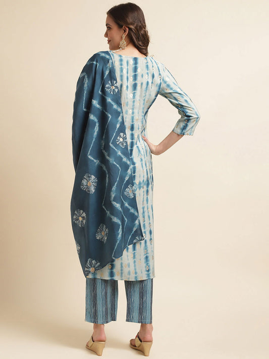 Blue Ethnic Motifs Straight Kurta & Trousers With Dupatta