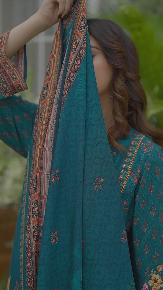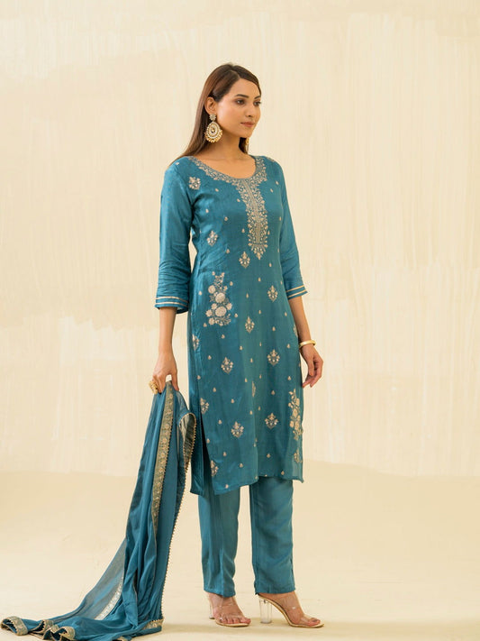 Teal Pakistani Suit with Hand & Mirror Work | 3Pc Festive Ensemble