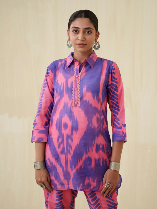 Traditional Printed Round Neck Tunic & Trousers Co-Ords