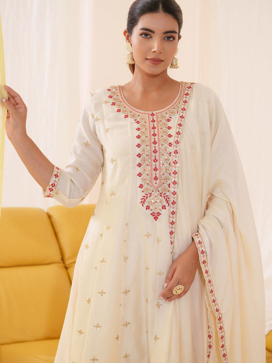Vichitra White Embroidered Kurta With Trousers & Dupatta