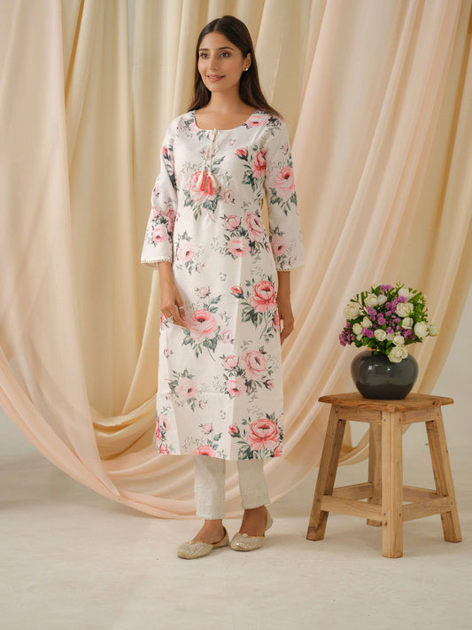 Sold outWhite Floral Printed Straight Kurta