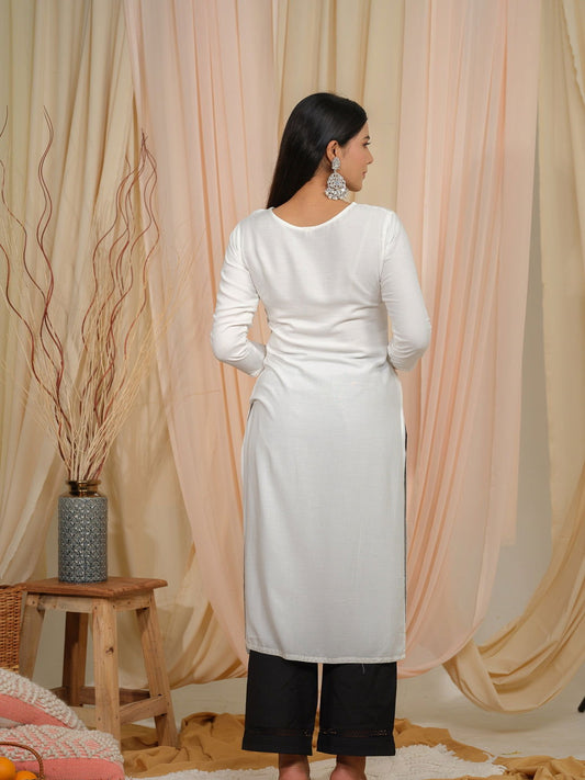 White Ethnic Motifs Embroidered Straight Kurta