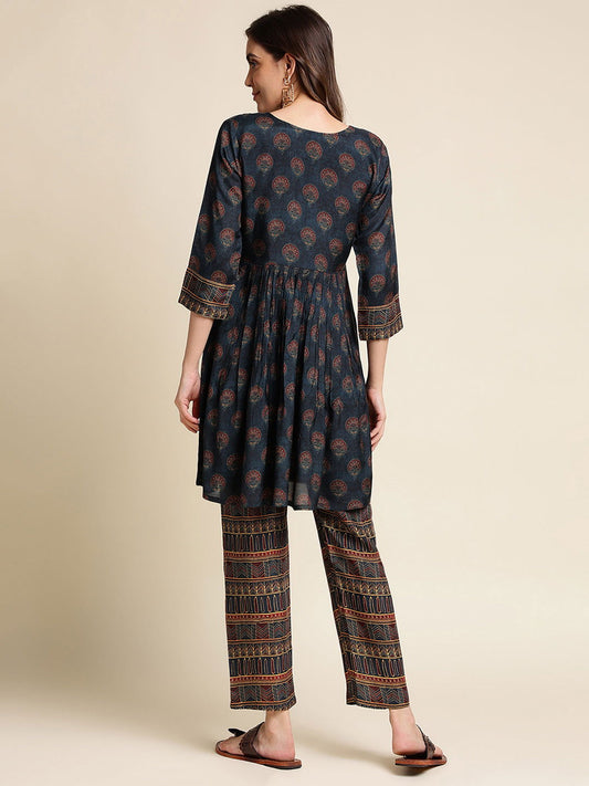 You save 61%You Navy Blue Printed Tunic With Trousers