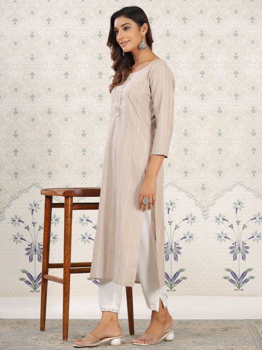 You save 68%Cream Floral Printed Sequinned Straight Kurta
