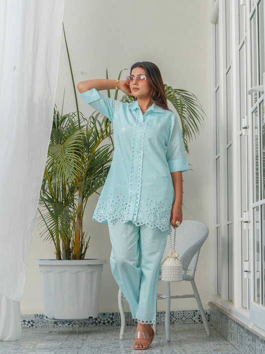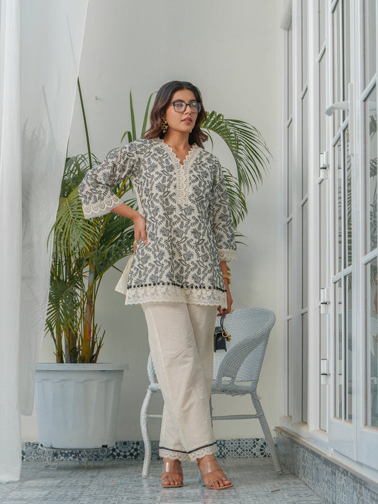 You save 50%Embroidered V-Neck Pure Cotton Tunic & Trouser