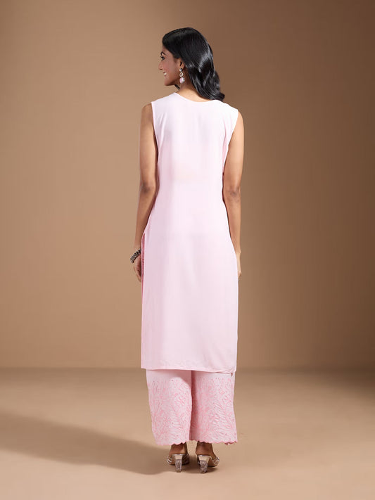 You save 60%Embroidered Straight Kurta & Sharara With Dupatta