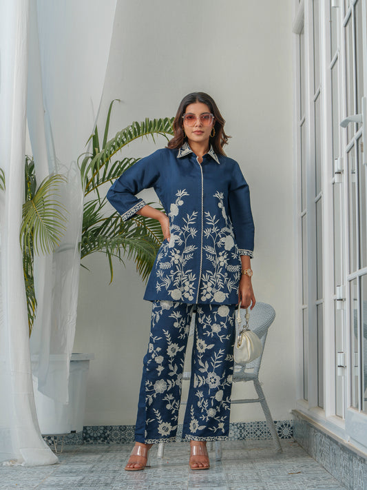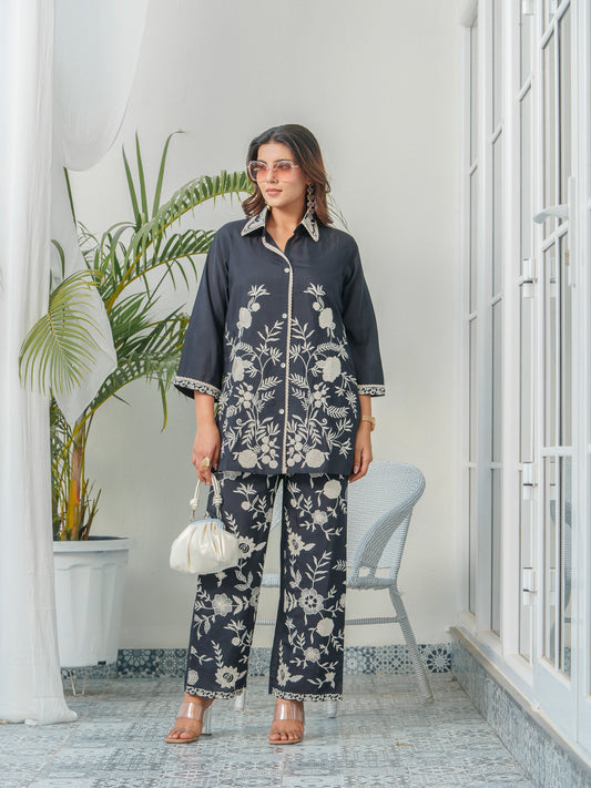 Embroidered Shirt Collar Roman Silk Tunic & Trouser