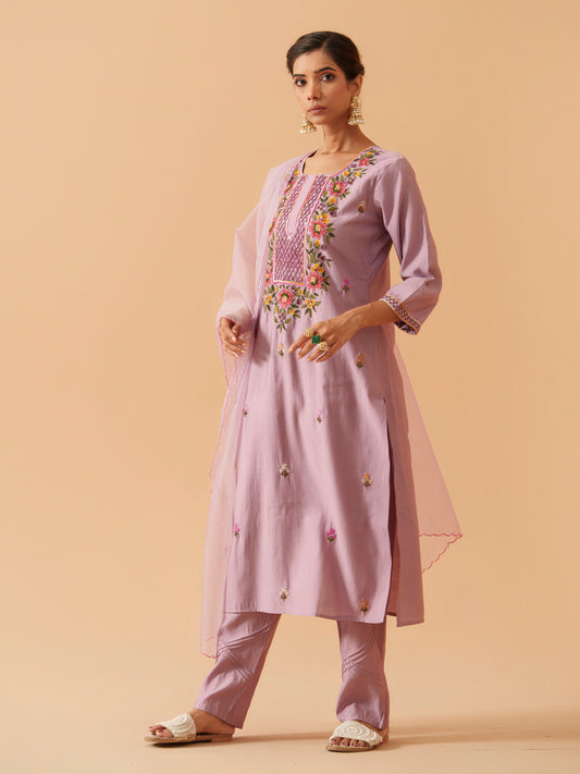 Embroidered Straight Kurta With Trouser & Dupatta Set