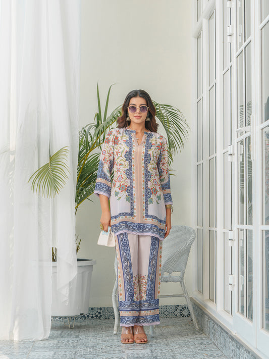 Floral & Geometric Printed Tunic With Trousers Co-Ords