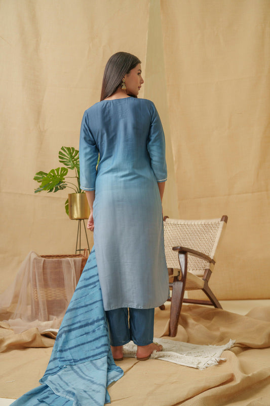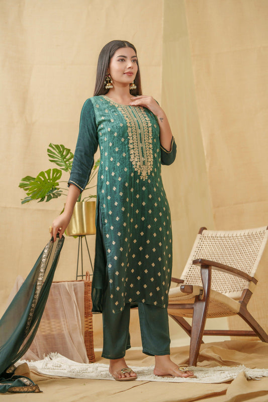 Ethnic Motif Embroidered Kurta & Trouser With Dupatta