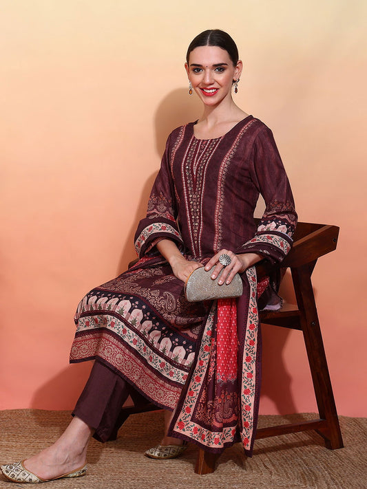 Ethnic Motif Printed Straight Kurta With Trouser & Dupatta