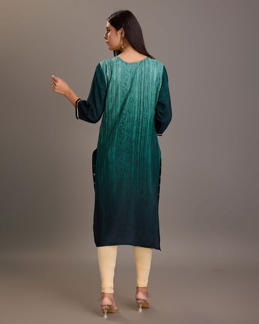 Ethnic Motif Printed Mirror Work Straight Kurta