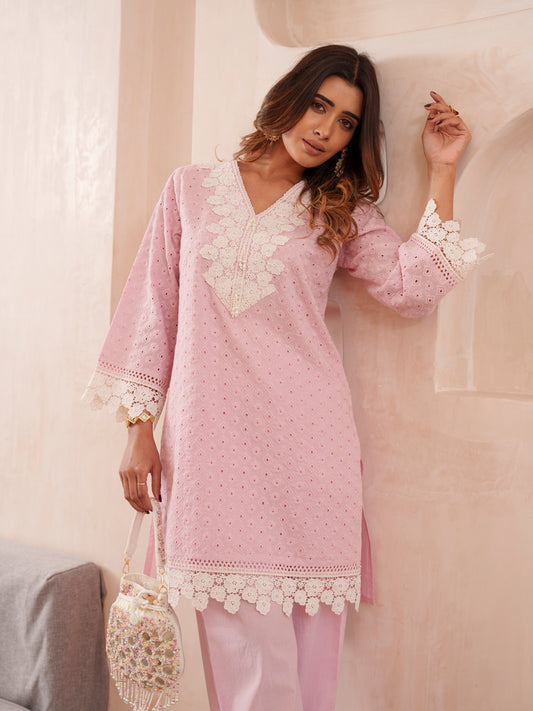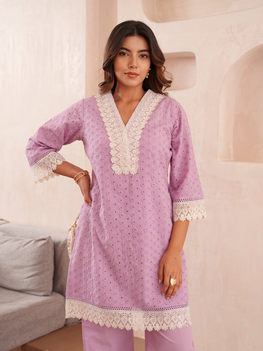 You save 69%Embroidered V-Neck Pure Cotton Tunic & Trouser