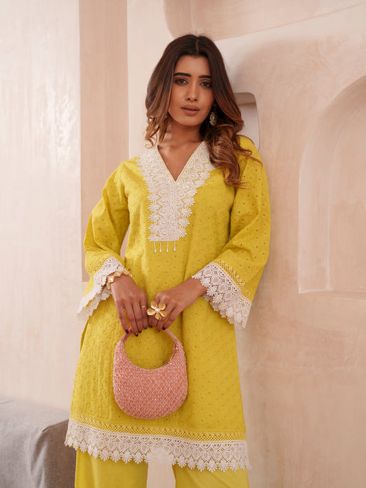 Embroidery Intricate Hand Chikankari Kurta with Pant and Dupatta