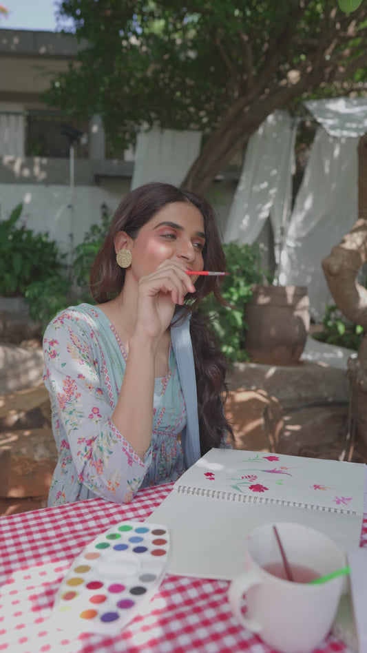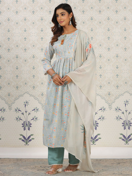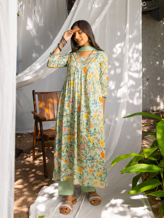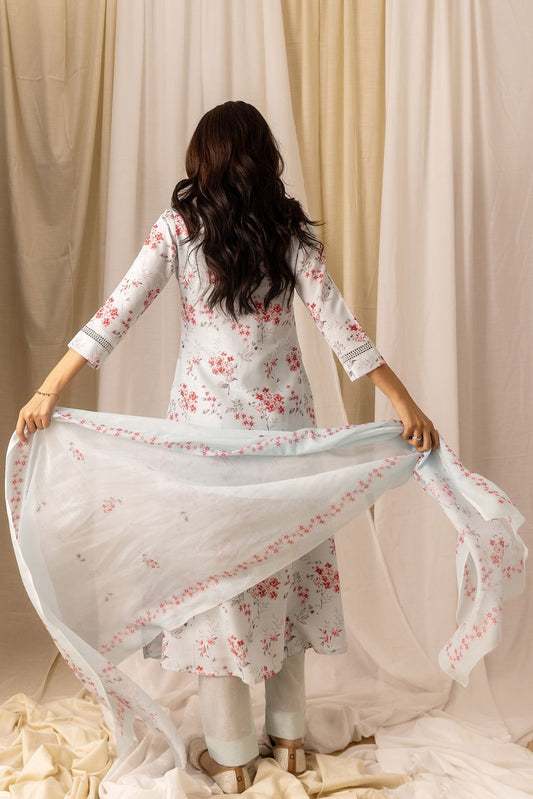 Floral Printed A-Line Empire Kurta With Trouser & Dupatta