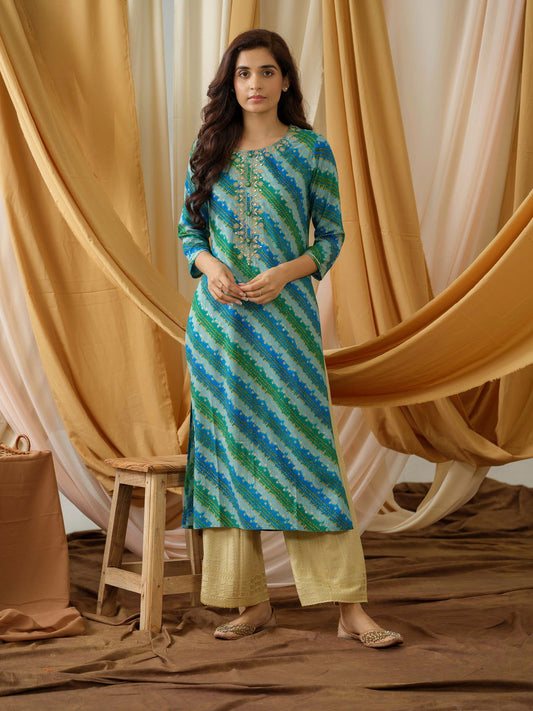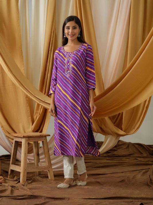 Rayon Lehriya Printed Round Neck Straight Kurta