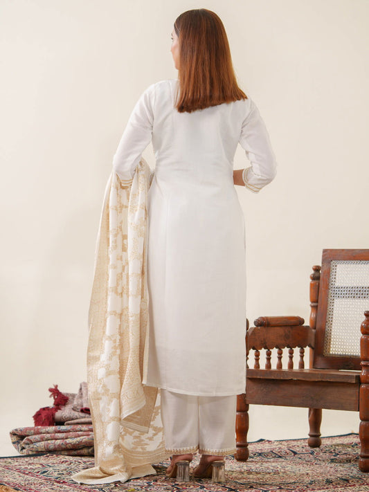 Roman Silk Woven Design Kurta With Trousers & Dupatta
