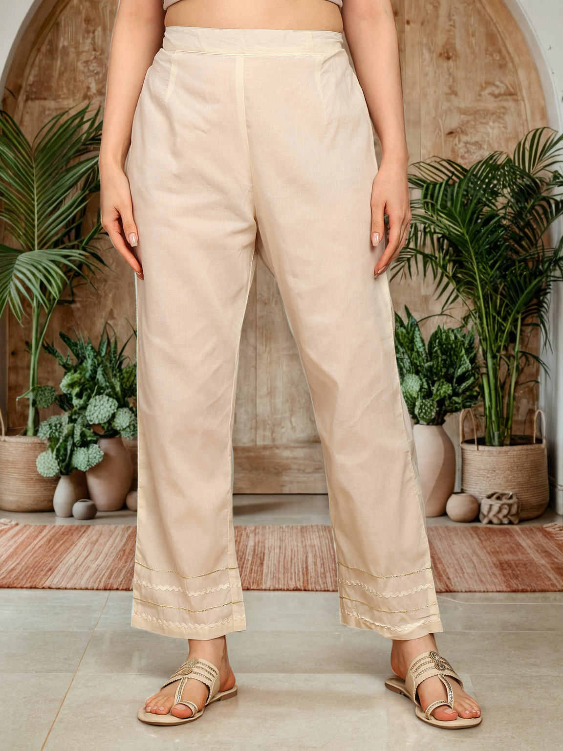 This close-up captures the intricate details of a stunning ivory or cream ethnic kurta, perfect for a sophisticated daytime or festive look.