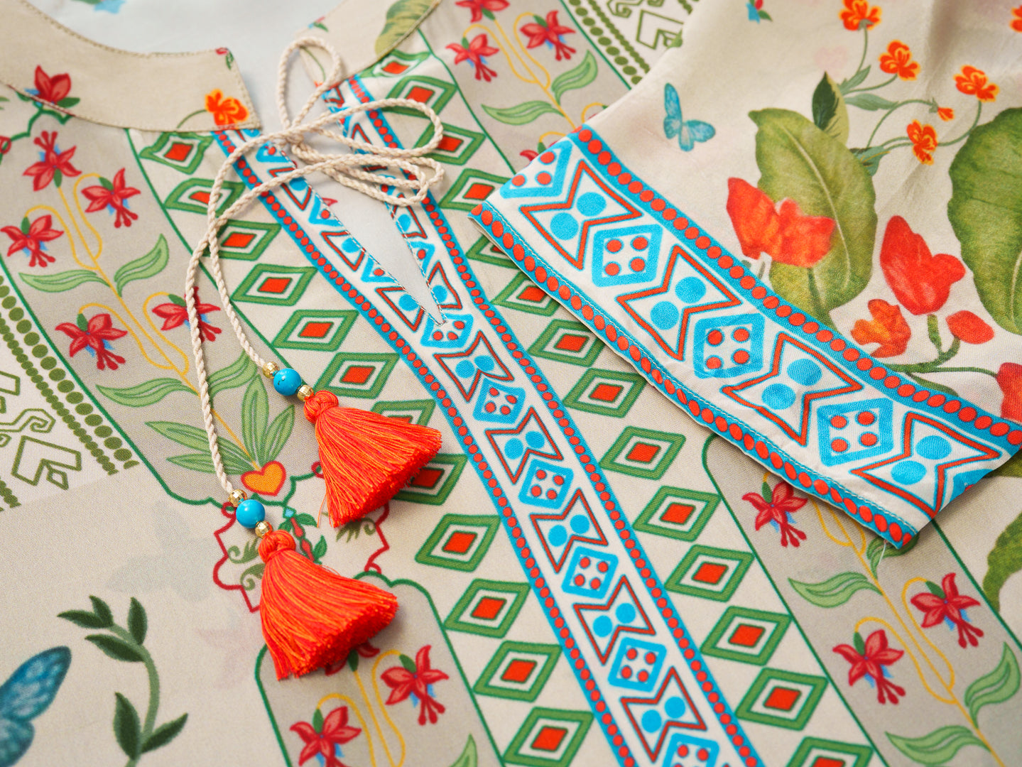 White & Orange Mandarin Collar Printed Tunic Palazzos