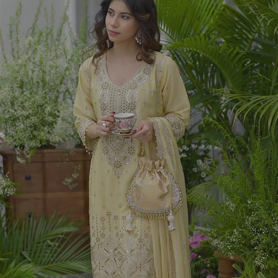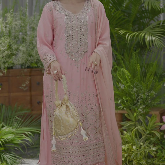 Embroidered Mirror and Cut Work Pakistani Kurta with Trouser and Dupatta Set