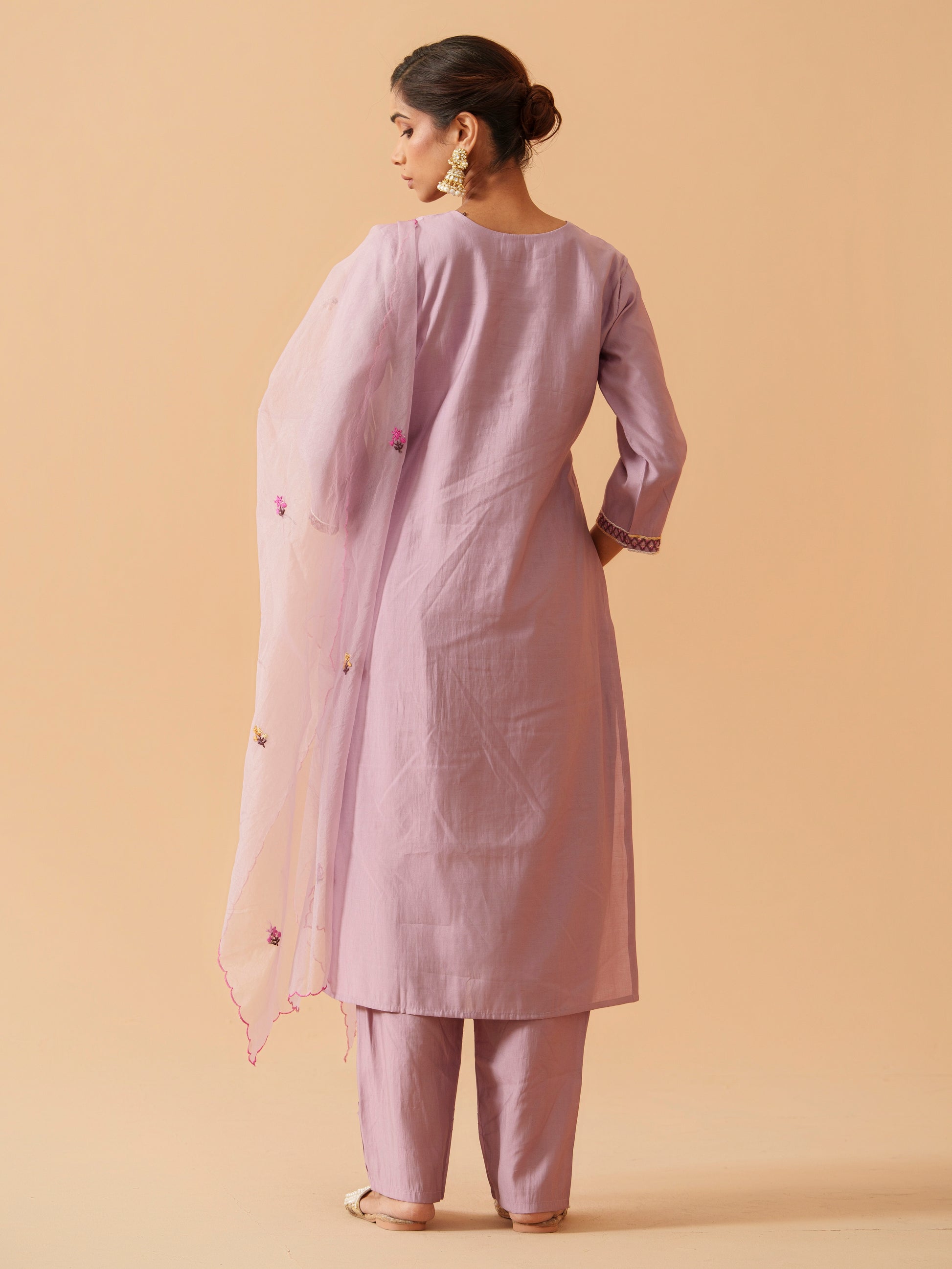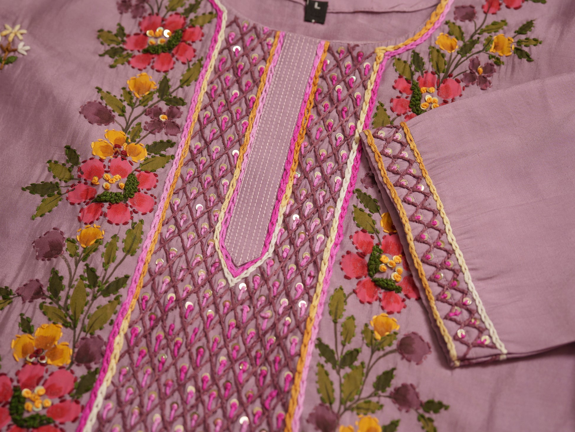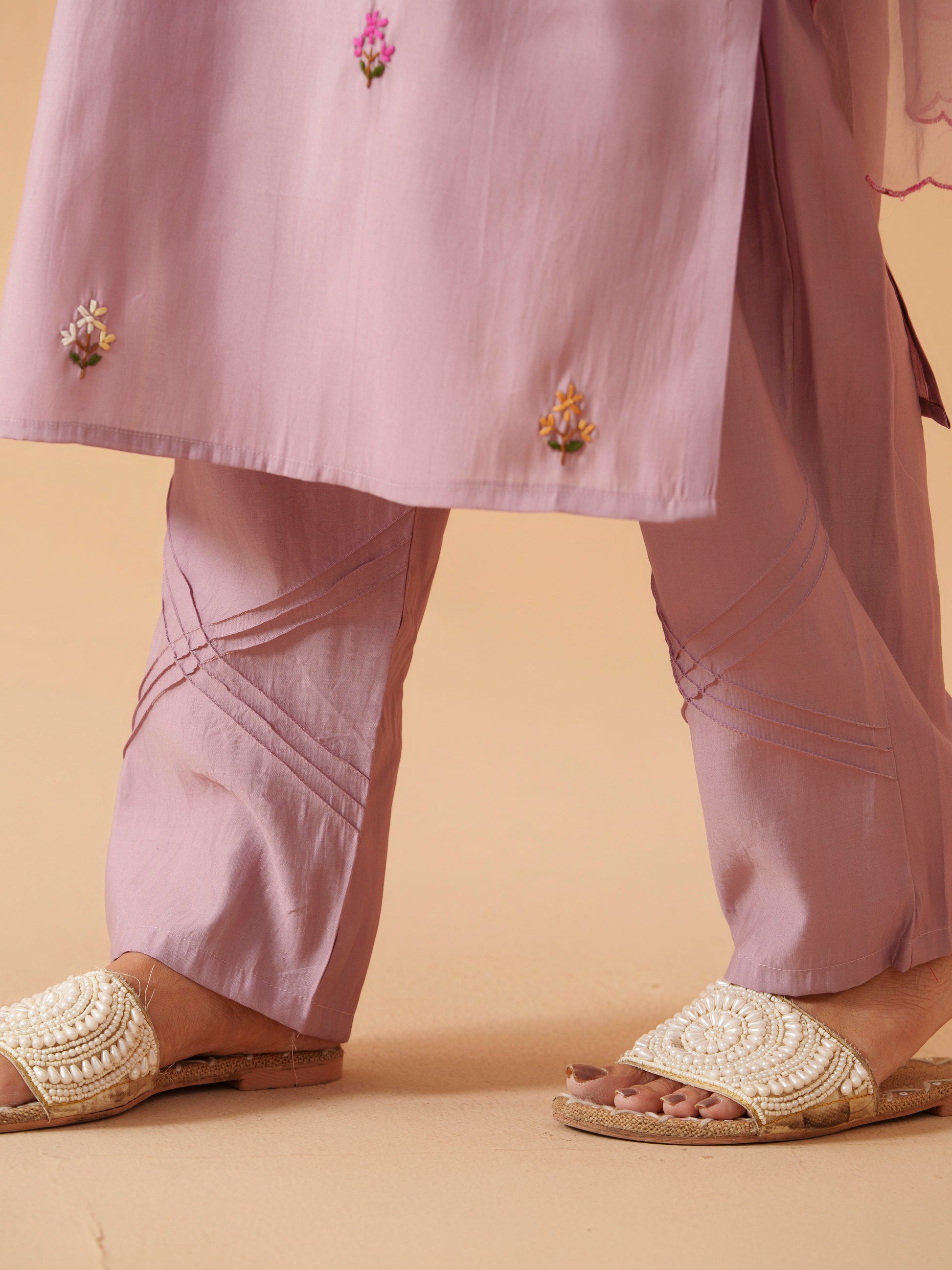 Floral Embroidered Straight Kurta & Trousers With Dupatta
