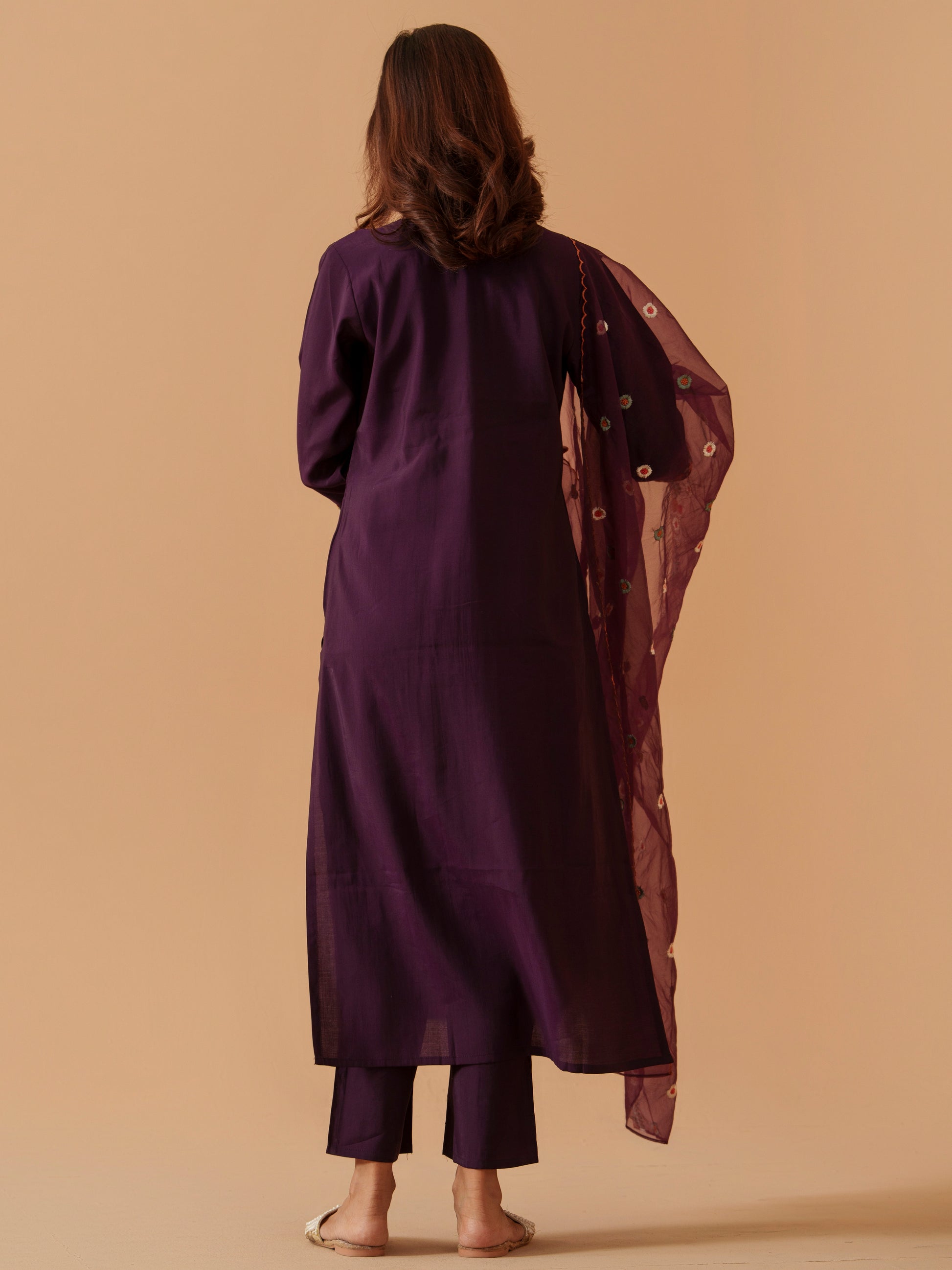 Floral Embroidered Straight Kurta & Trousers With Dupatta
