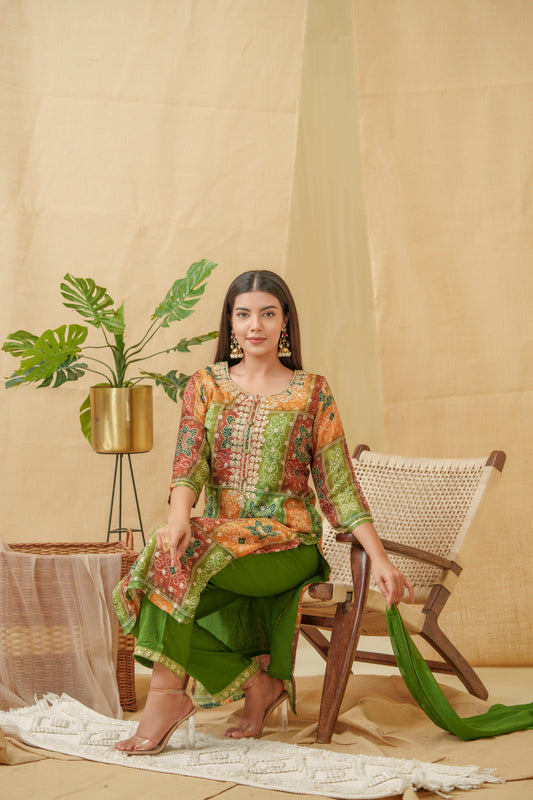 Bandhani Printed Ombre Kurta & Trousers With Dupatta