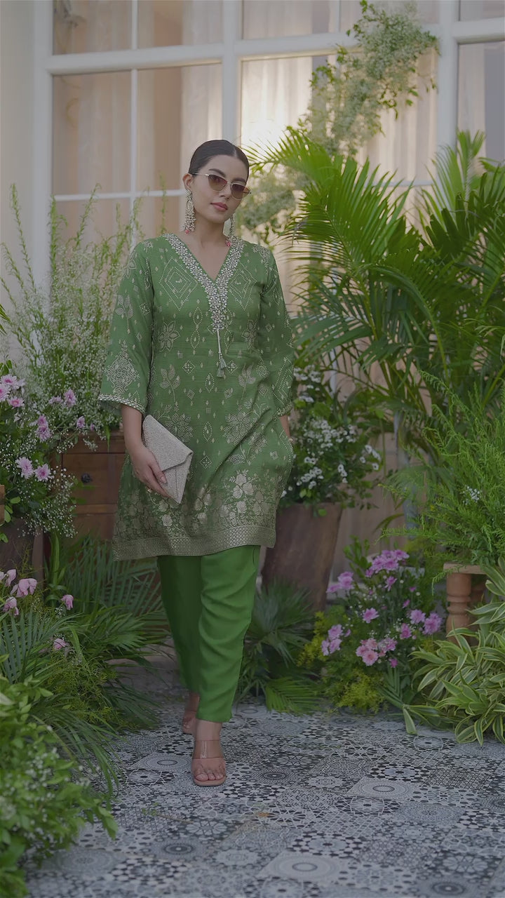 Channel refined elegance with this Green Jacquard Co-Ord Set, a perfect blend of timeless tradition and modern charm.