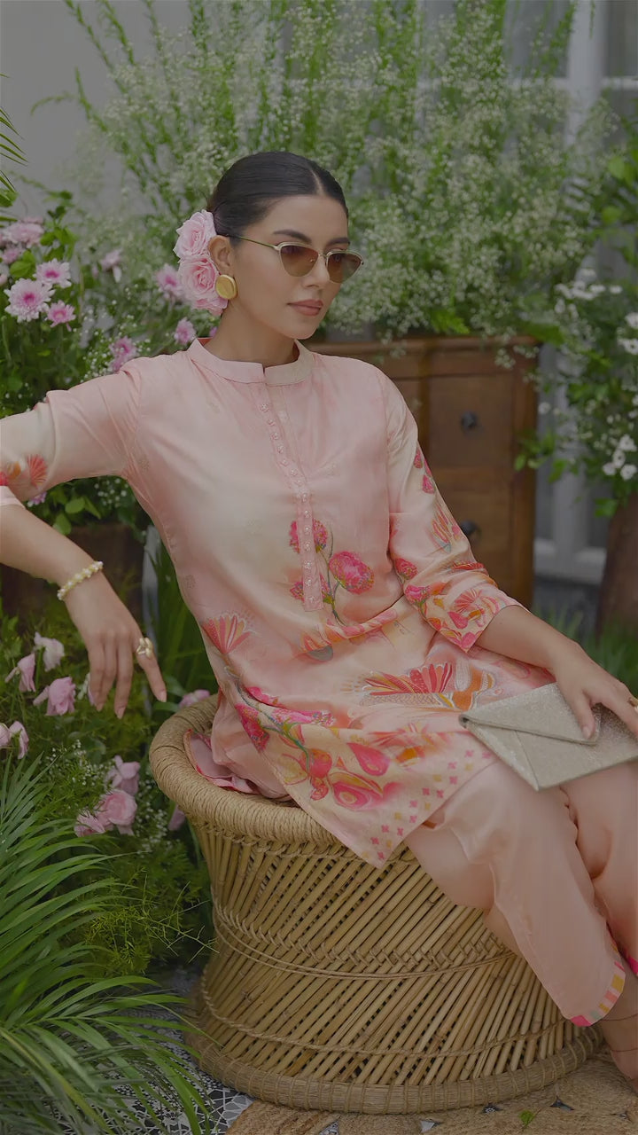 Peach Floral Printed Co-ord Set with Straight Pants – Ethnic Fusion Wear for Women