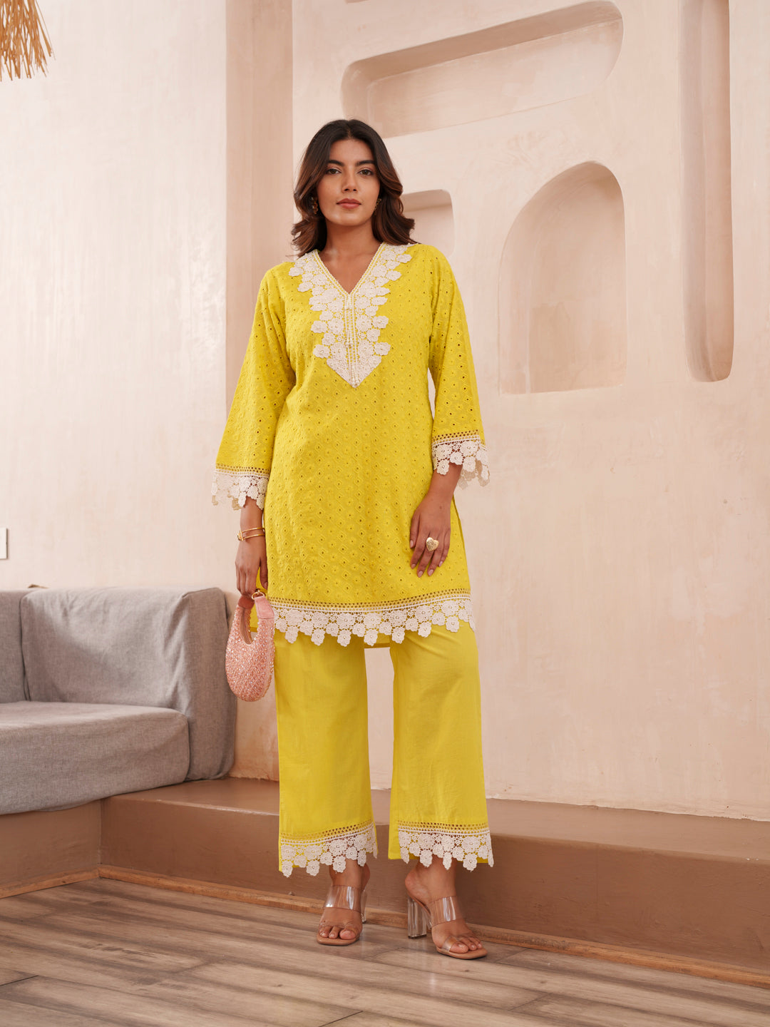 Pure Cotton Embroidered Top & Trousers Co-ord Set