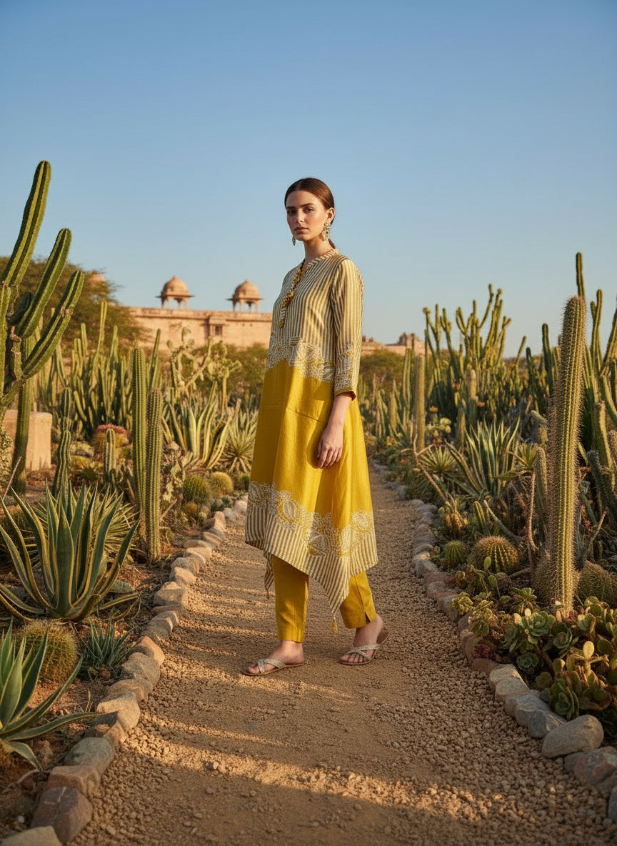 Elegant Embroidered Cotton Kurta Set