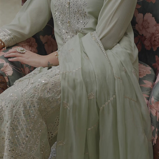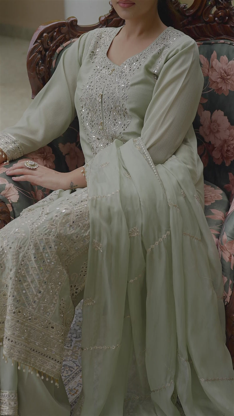A masterpiece of elegance, this embroidered kurta set is designed to make every occasion memorable. The kurta showcases intricate detailing on the neckline, sleeves, and borders, paired with coordinated bottoms and a flowing dupatta that completes the ensemble with finesse.
