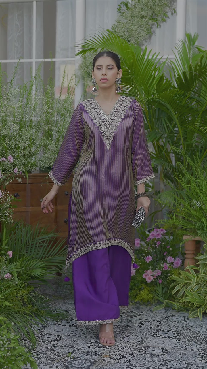 Violet V-Neck Handwork with Sequence Touch Co-Ord Set