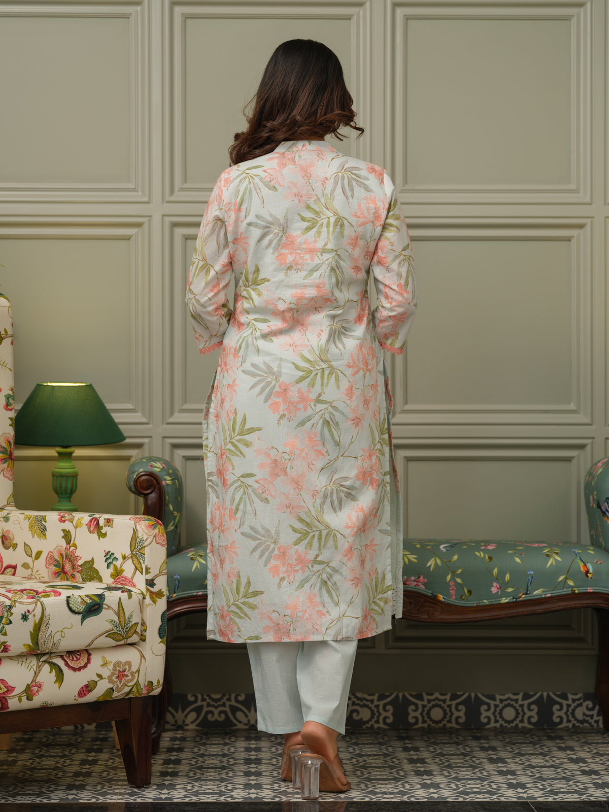 Floral Embroidered Straight Kurta & Trousers With Dupatta