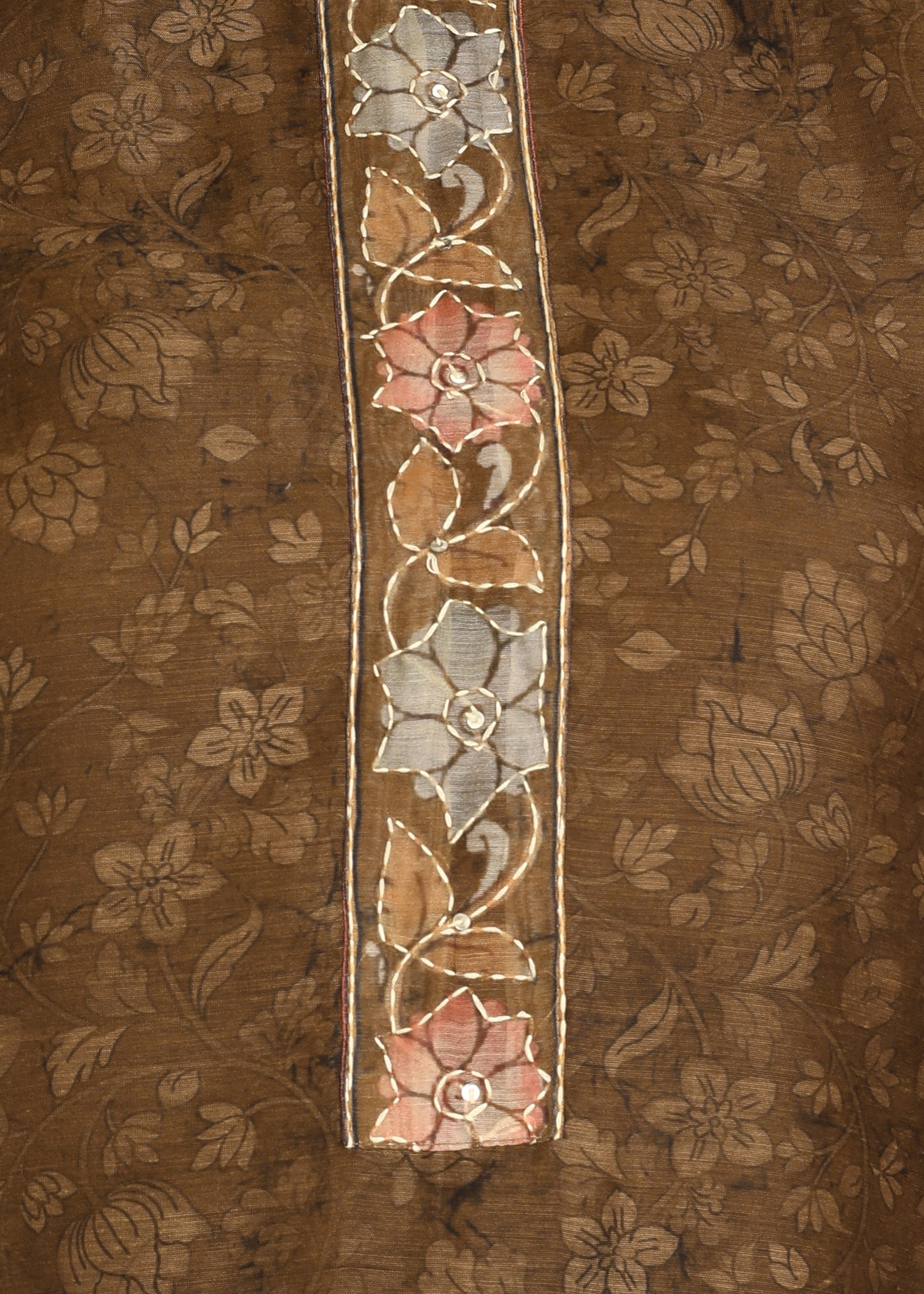 Style wardrobe with this elegant Kurta Set featuring traditional ethnic motifs, detailed thread kantha, work, and a subtle sequence touch.