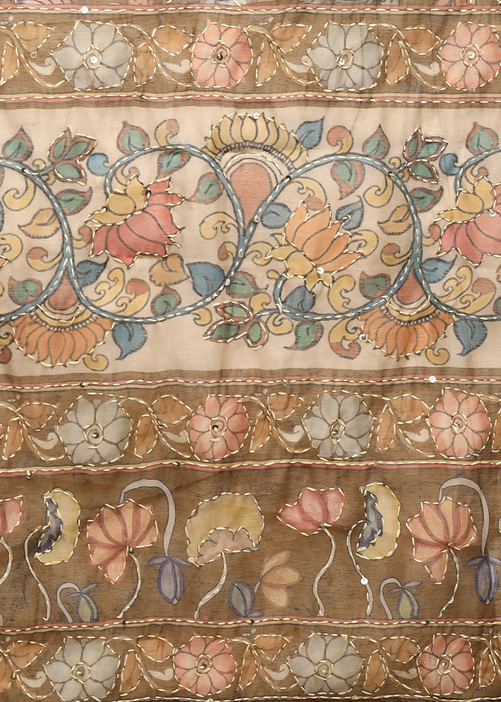 Floral Printed Regular Sequinned Linen Kurta With Trousers & Dupatta