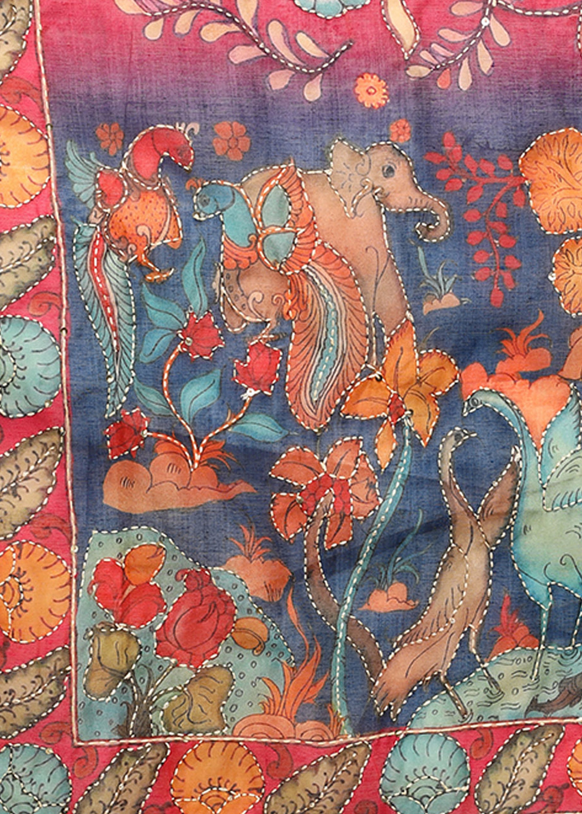 Style wardrobe with this elegant Kurta Set featuring traditional ethnic motifs, detailed thread kantha, work, and a subtle sequence touch.